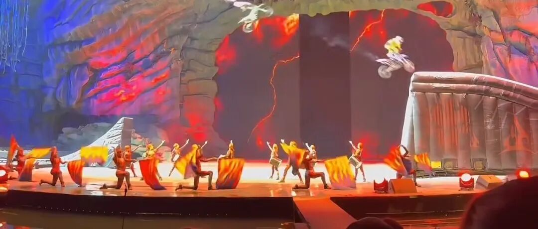 惊险!极限飞车演员高空表演坠落