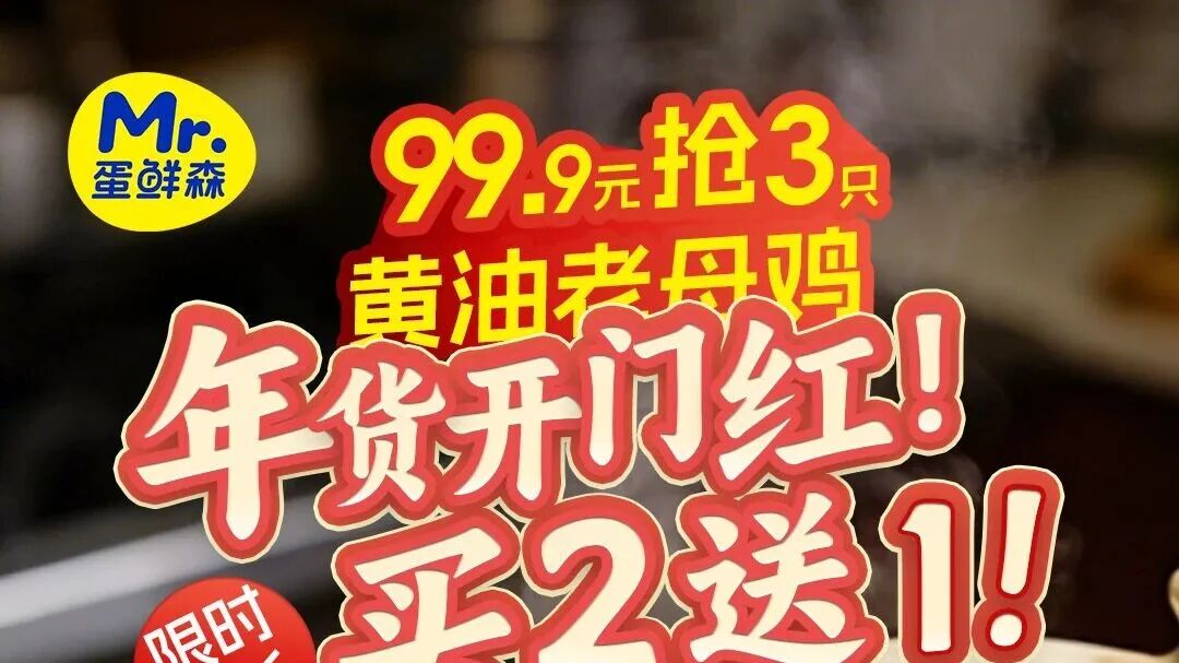 99.9元秒杀3只!蛋鲜森400天黄油老母鸡