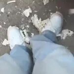 福建平潭一女子海边游玩穿尘封多年新鞋,刚走两步鞋底当场粉化掉渣,像过期饼干一捏就碎:岁月不饶鞋也不饶我