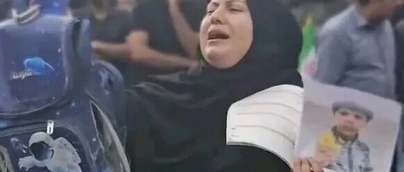 伊朗被炸学校葬礼上的中国书包令人心碎,一位母亲左手拿着孩子的照片、课本,右手拿着孩子的书包,胸前还挂着一件小小的上衣