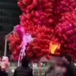 深圳一男子跨年夜点燃商贩气球,气球瞬间燃烧,下方车辆起火,当地:男子已被刑拘,无人受伤