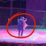 湖北一杂技演员表演高空杂技时,疑似被绳索套住脖子致晕厥!目击者:演员缓了一会儿便清醒过来;当地回应:轻微擦伤,该项表演已暂停